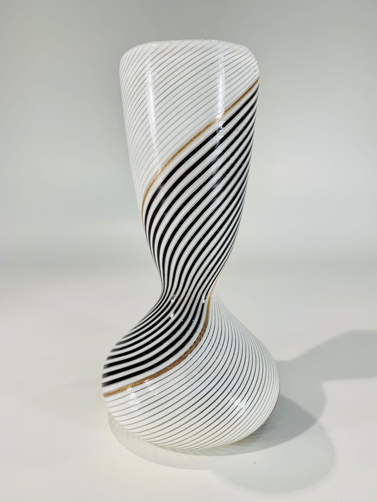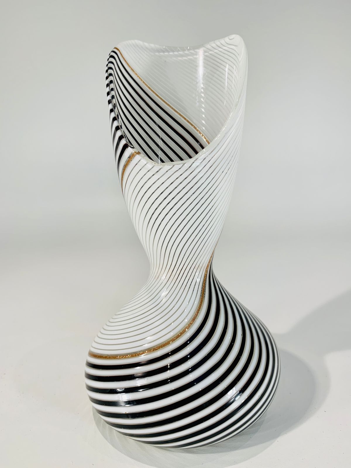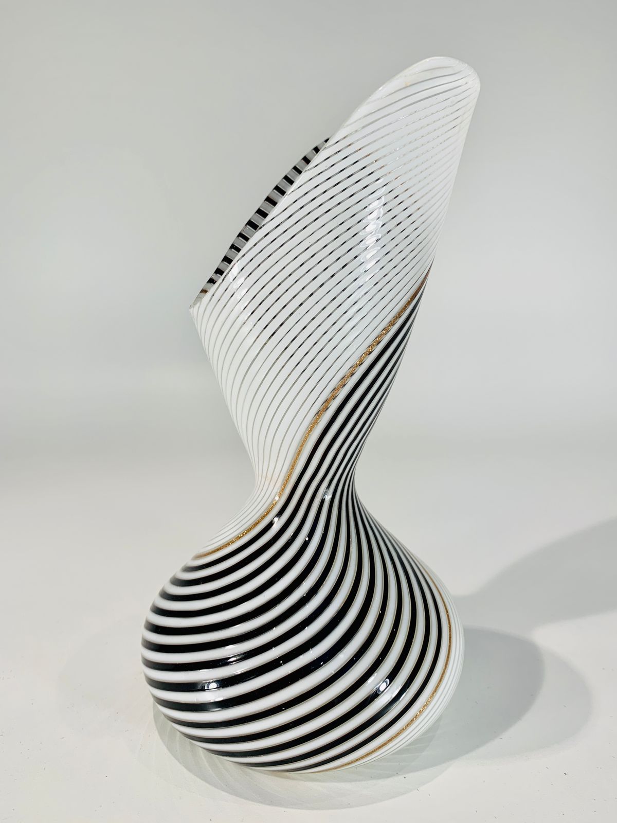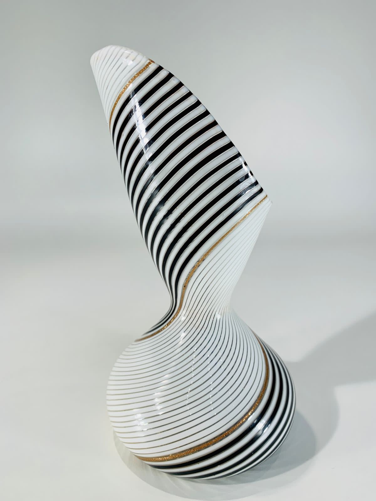 Vidro artístico soprado de Murano FRATELLI TOSO 1952 DINO MARTENS vaso em vidro artístico soprado de Murano série “bianco e nero”. Peça única.