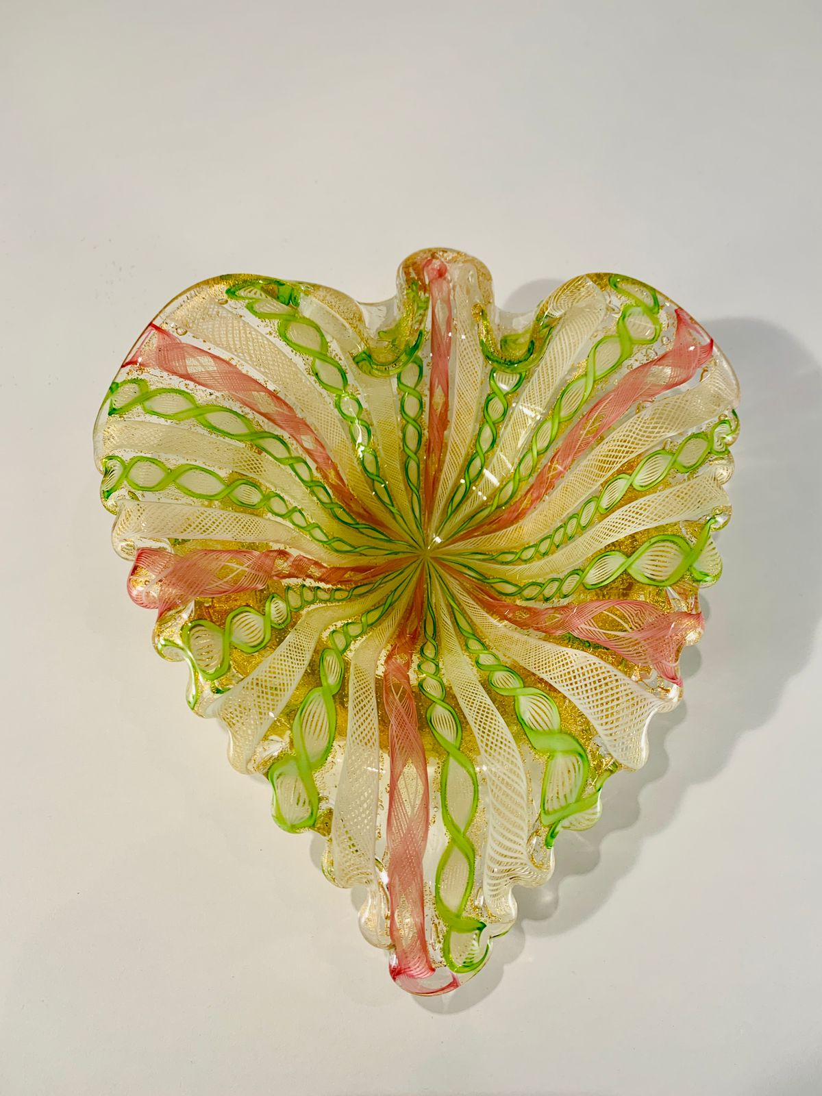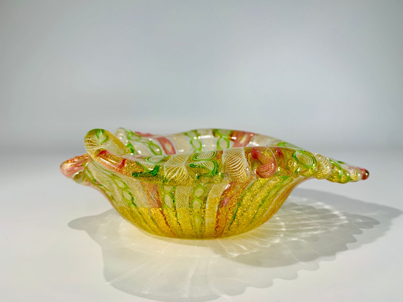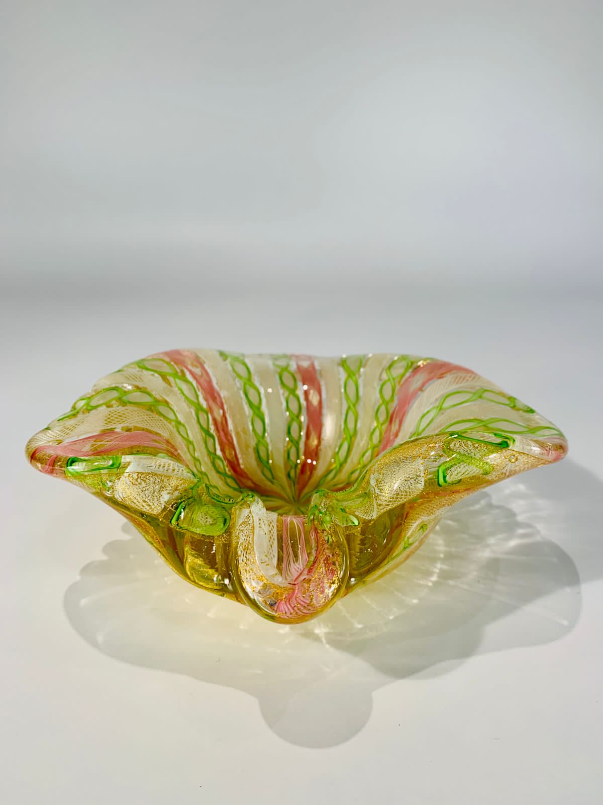 Vidro artístico soprado de Murano VENINI 1950 com zanfirico, filigrana e folha de ouro. Peça única.