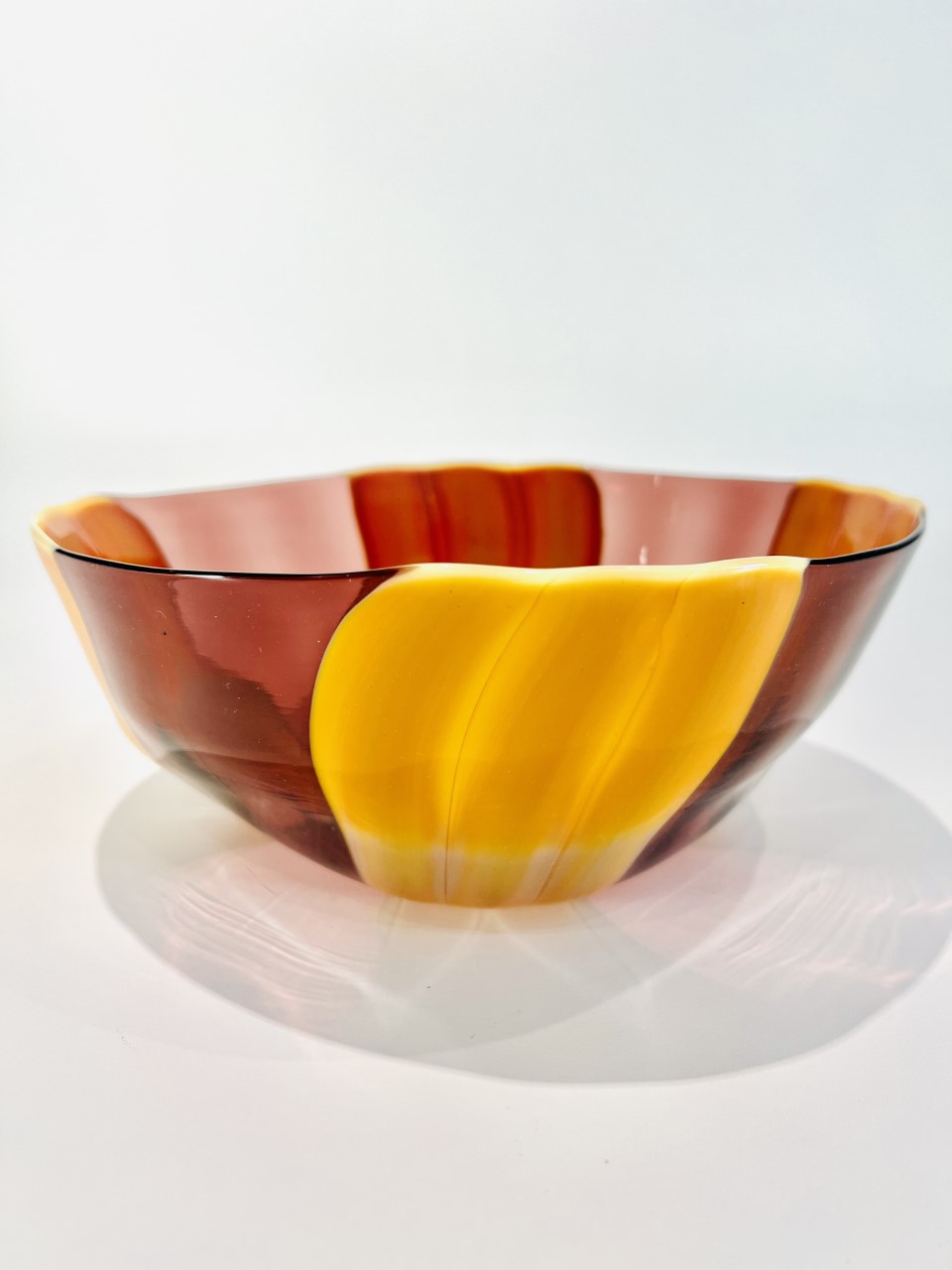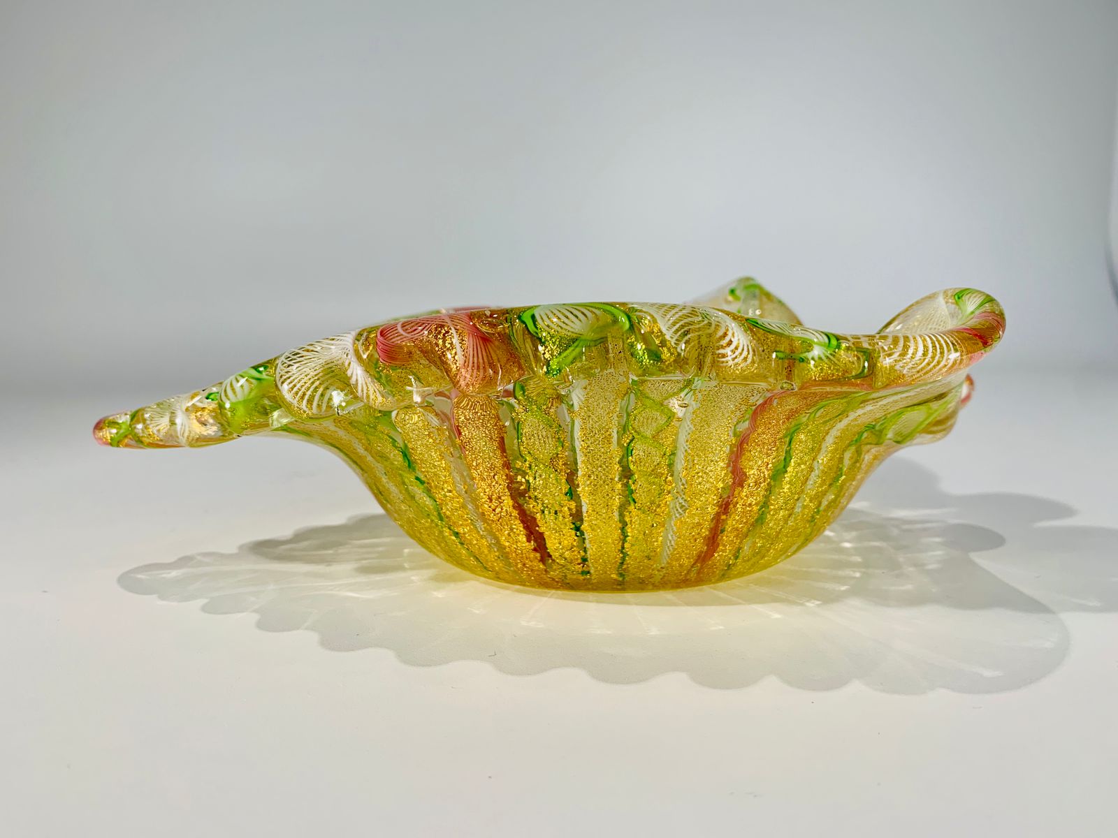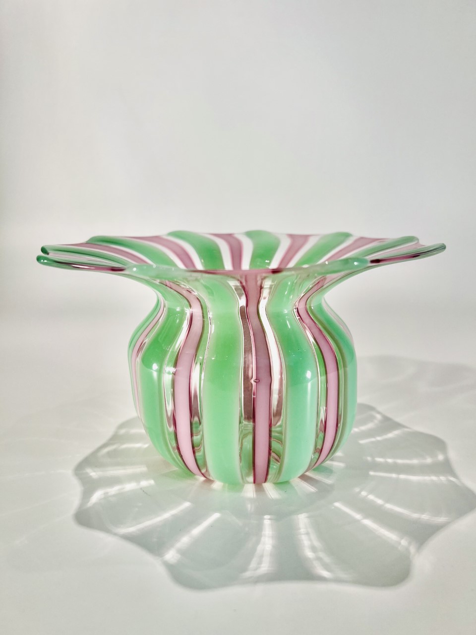 Vidro artístico soprado de Murano VENINI 1950 com zanfirico, filigrana e folha de ouro. Peça única.